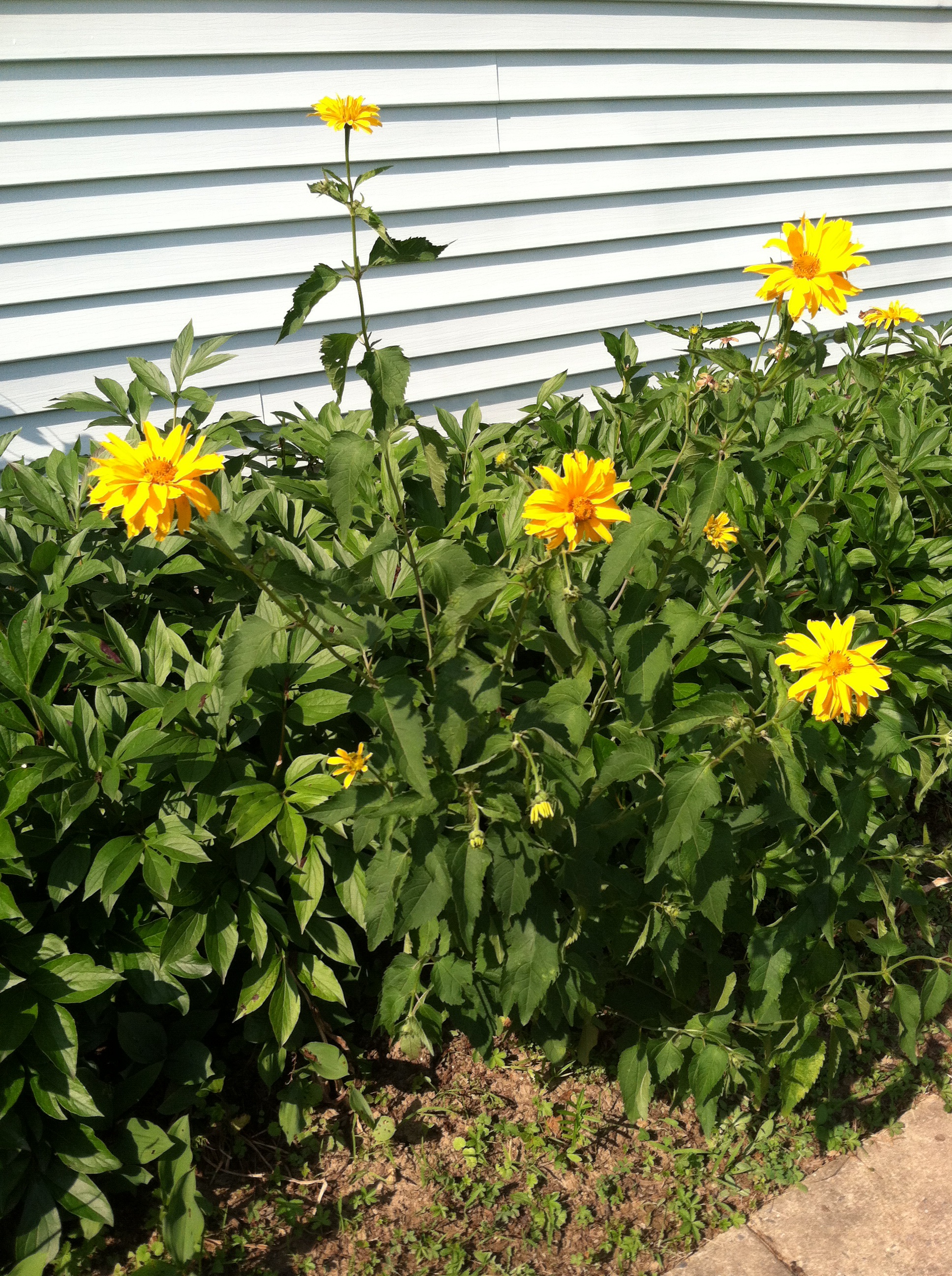 Well, I’m not very good at planning my garden so things bloom “on-schedule”, but the false sunflower and butterfly weed just happen to be blooming at the same time. In the butterfly/hummingbird garden in the back, the bee balm, swamp milkweed, and a couple coreopsis are blooming, but the Indian Pink is finishing. The individual flowers are pretty, but as a whole, it doesn’t look very good. Nothing like your gardens!!
