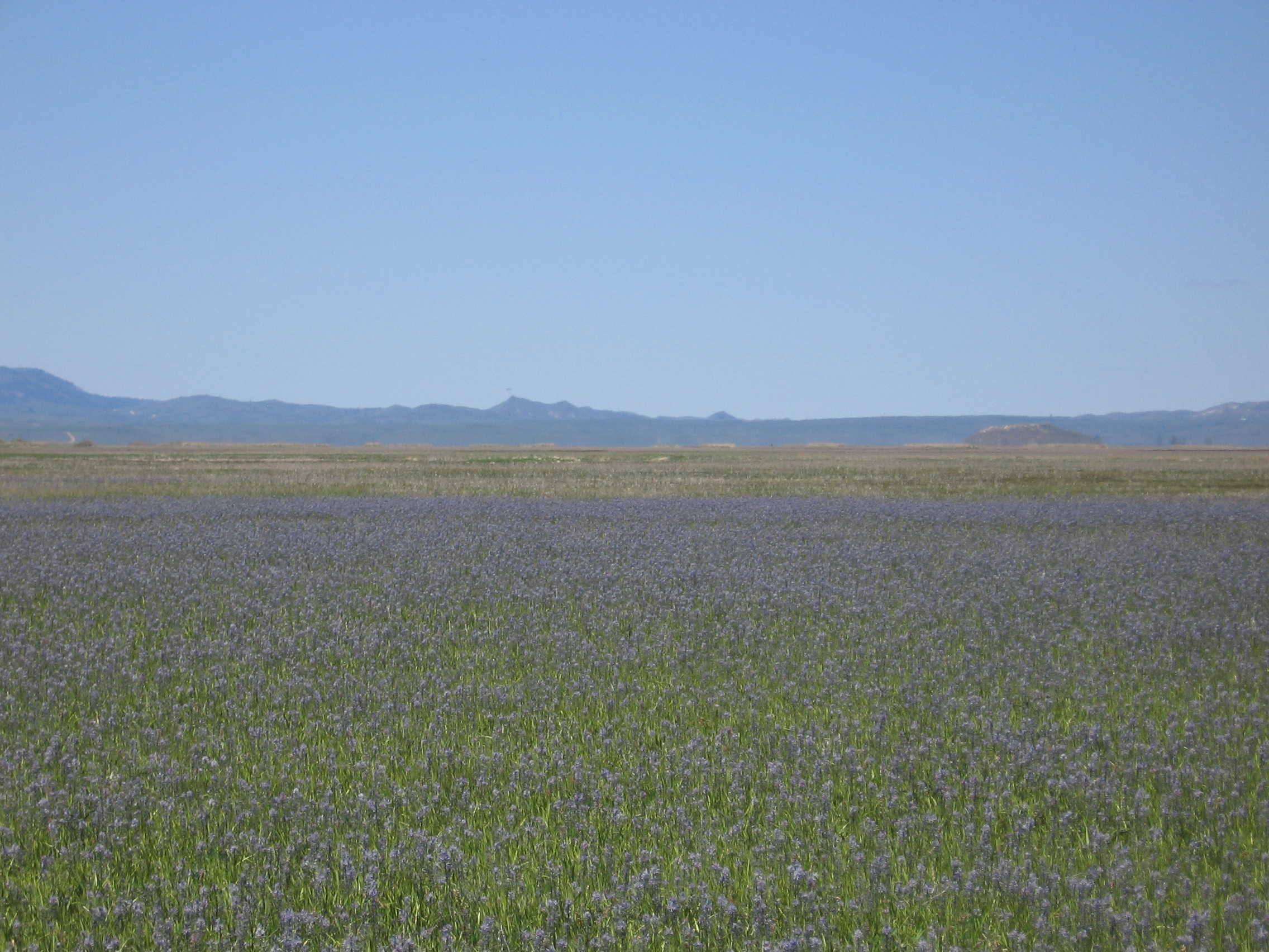 Camas is one of my favorite native plants of Idaho. It is not only beautiful but its roots were a major food source for native people before white settlers arrived. Here are two pictures. One is from my yard where we have put a few camas plants. They require a lot of water, so we are very careful with them. The second picture is a field of camas on what is called the Camas Prairie. My picture doesn’t really do justice to them. From a distance, they look like a sea of blue. Leslie