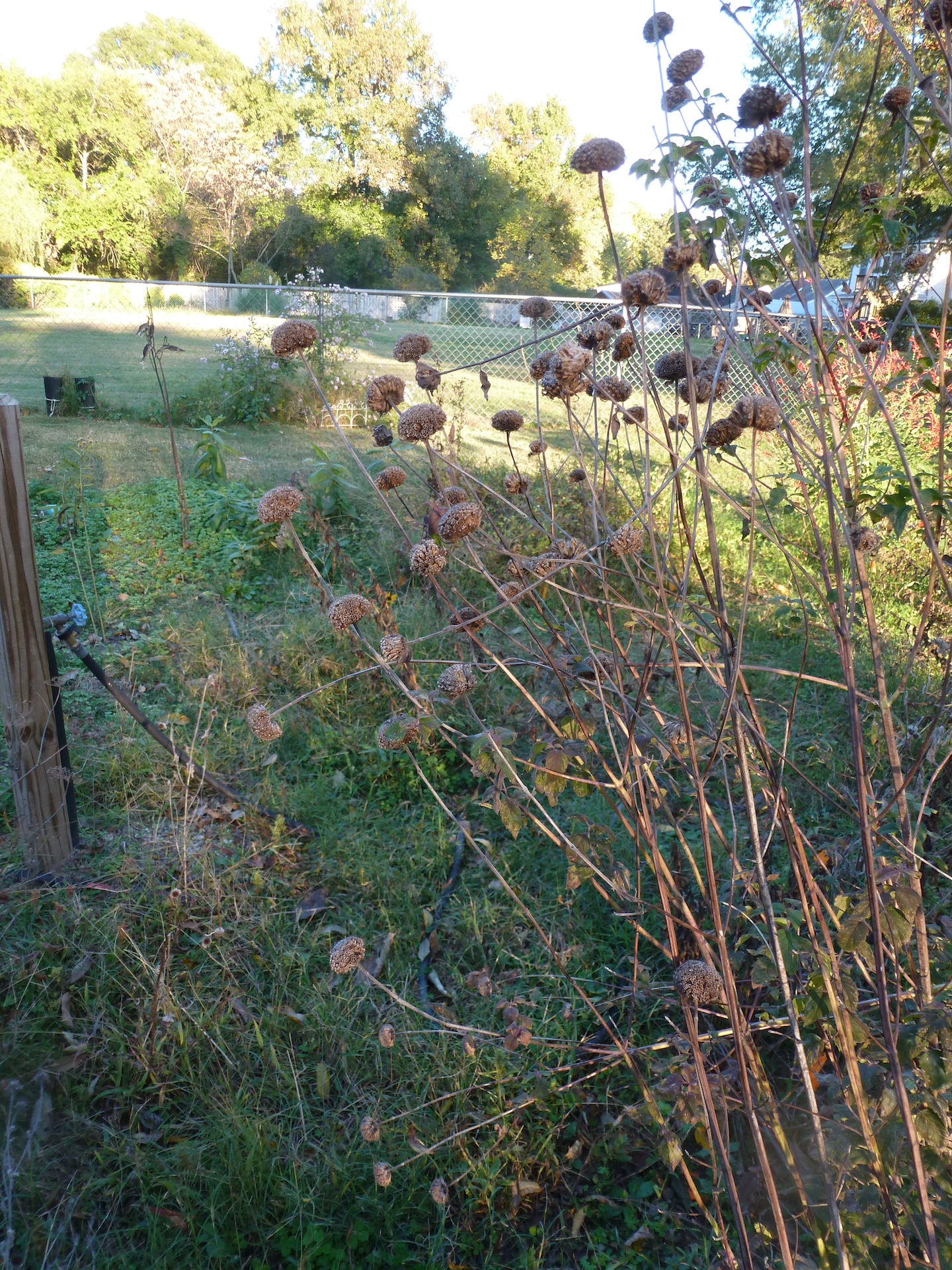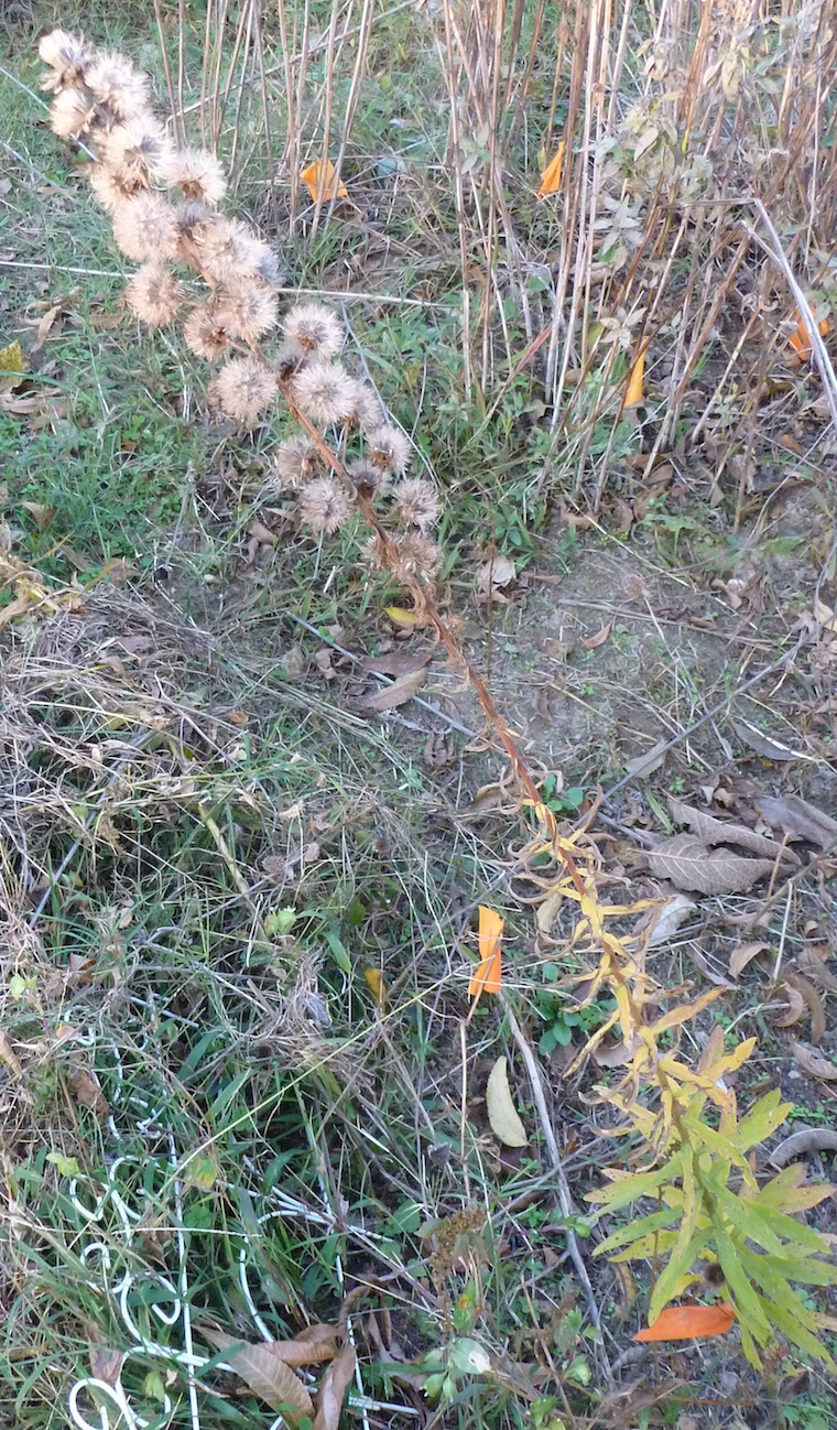 The Monarda fistulosa and sweet joe pye weed are long past blooming but still have some green leaves.