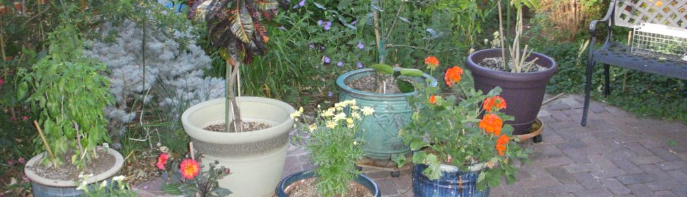 The header photo on this page shows Bonnie’s potted plant garden in Denver.