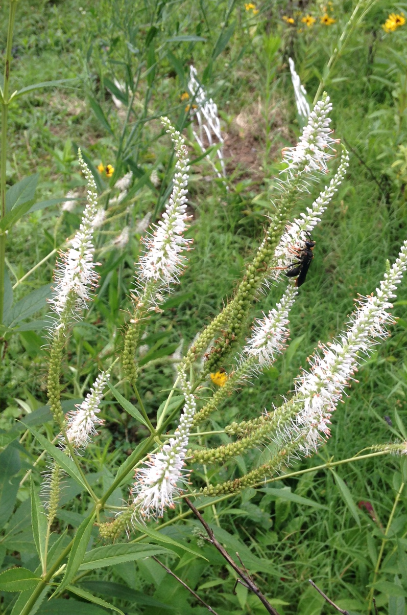The Culver’s Root is in full bloom and swarming with bees and wasps.  You can’t tell it from this picture, but this is one of those blue wasps.