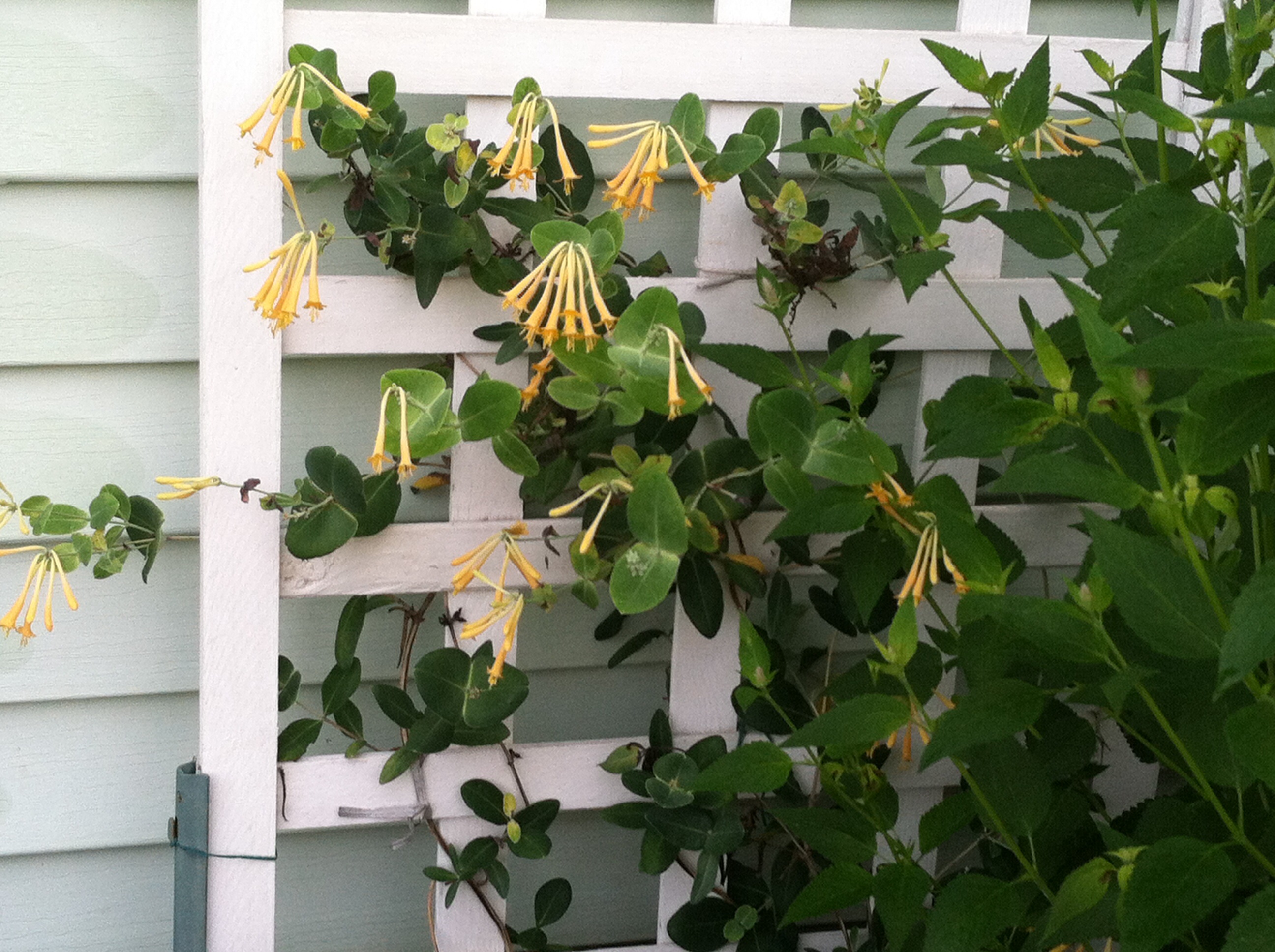 Unfortunately, my Little Joe-Pye up and died last August for some unknown reason, so I have replaced them with a couple new Sweet-scented Joe-Pye and some New York Ironweed.  I am looking forward to seeing how they turn out.  The hyssop I bought last fall is doing great so far, and the native honey suckle is about to bloom.  This is the plant I used to replace the horribly invasive native trumpet vine, which by the way, is still trying to put out a shoot here and there.