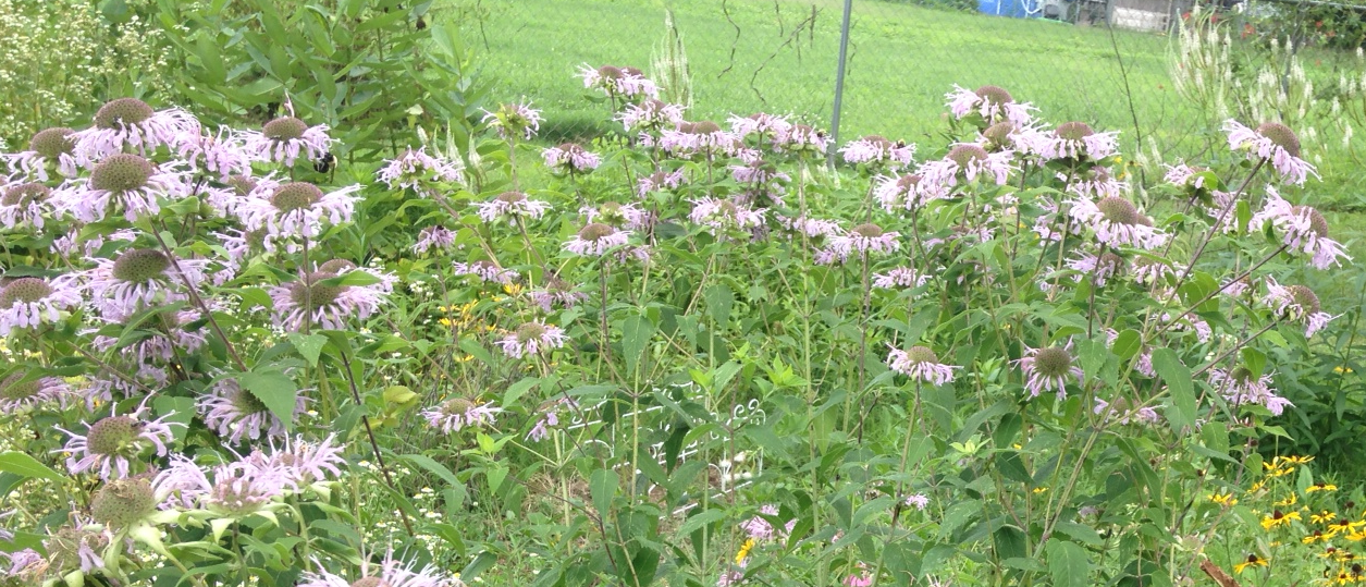 The Monarda fistulosa is starting to bloom and the bumblebees have already found it.